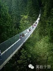 卡佩兰奴吊桥是温哥华最具代表性和震撼力的名胜之一。它横跨宽达450英尺的卡佩兰奴河,悬挂在摄人魂魄的230英尺高空。加拿大和温哥华的历史不是很长,但吊桥公园里面的很多原始树木的年龄比他们现在所属的国度和城市的年纪还要大。