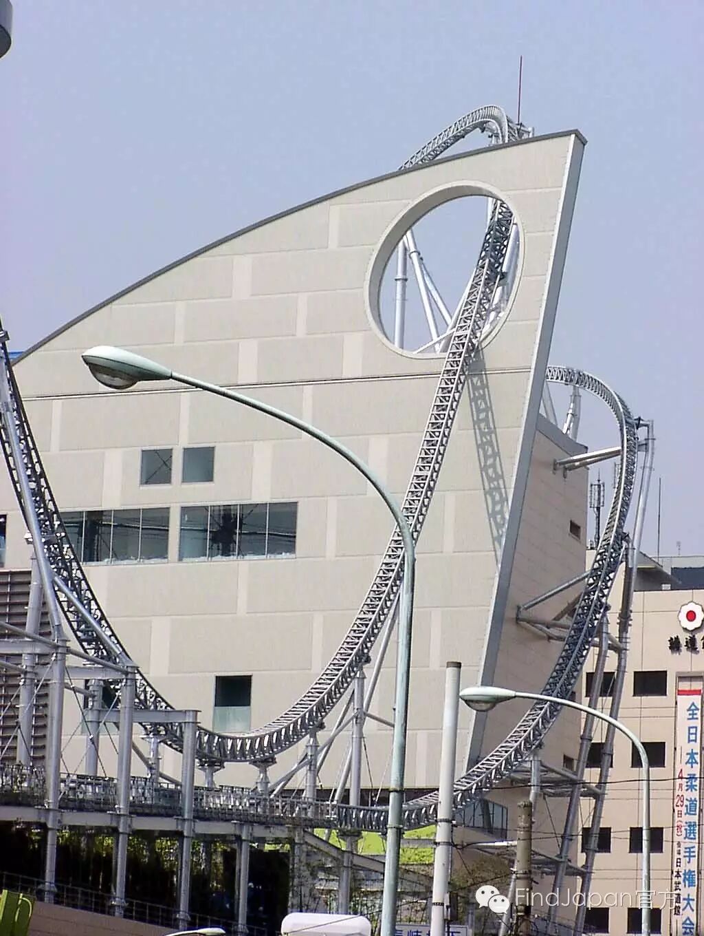 在东京都内的过山车,在大楼的屋顶上行驶,从楼中的墙洞穿过。