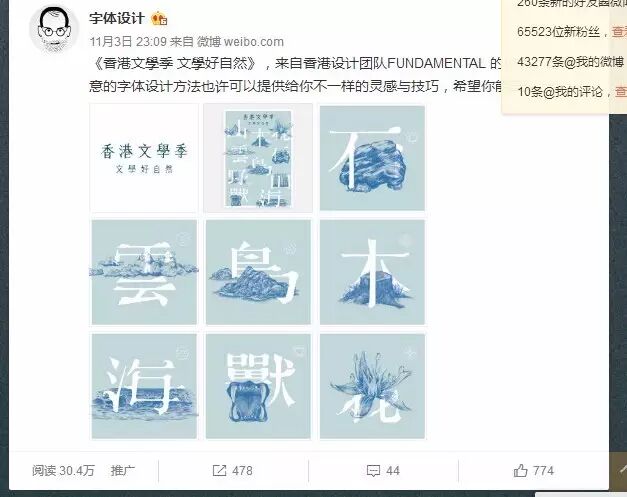 回顾11月,@字体设计 一共分享了67篇博文,平均每天2篇,内容不同样。