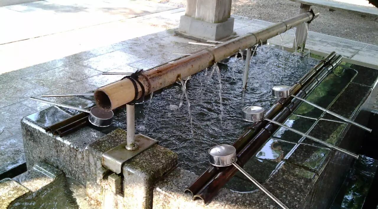 之后到本殿前在洗手池净手,进入大社前有洗手和漱口的洗手池,也就是去礼敬天神,先净化一下自己。做法是首先用右手拿勺取水洗左手。然后将勺换到左手取水来洗右手,之后再将勺换回到右手,取水放到左手来漱口。漱完口再洗一下左手。最后将勺立起来,用多余的水洗一下勺柄。