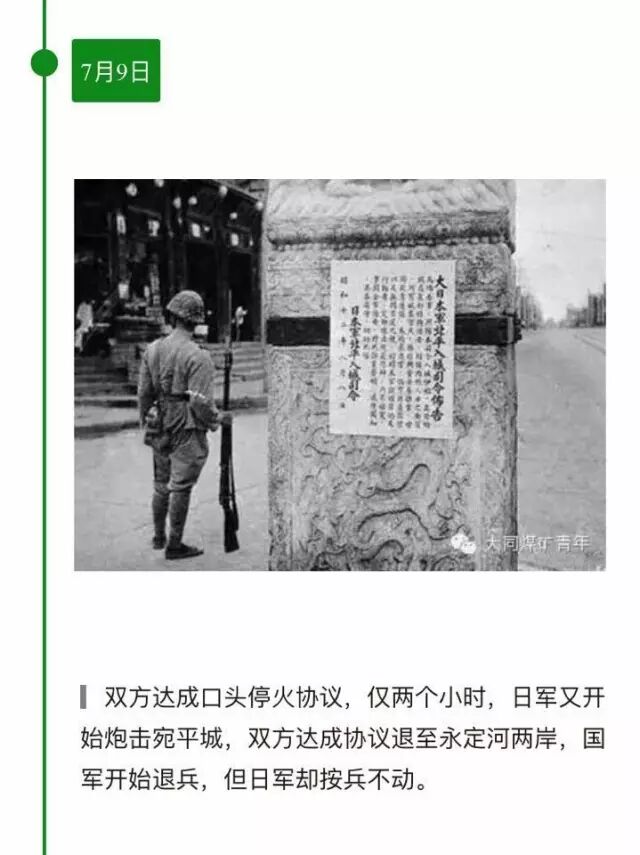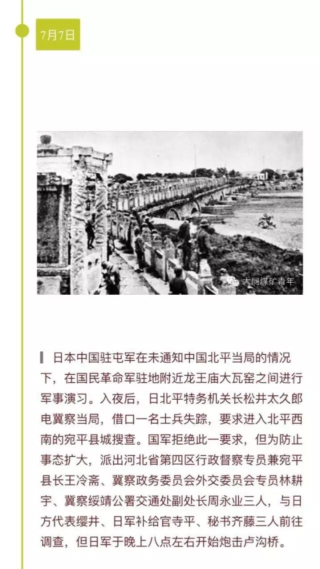 1937年7月7日夜,,借口一名士兵“失踪”,要求进入宛平县城搜查,遭到中国守军第29军严辞拒绝。,又炮轰宛平城。。这就是震惊中外的七七事变,又称卢沟桥事变。