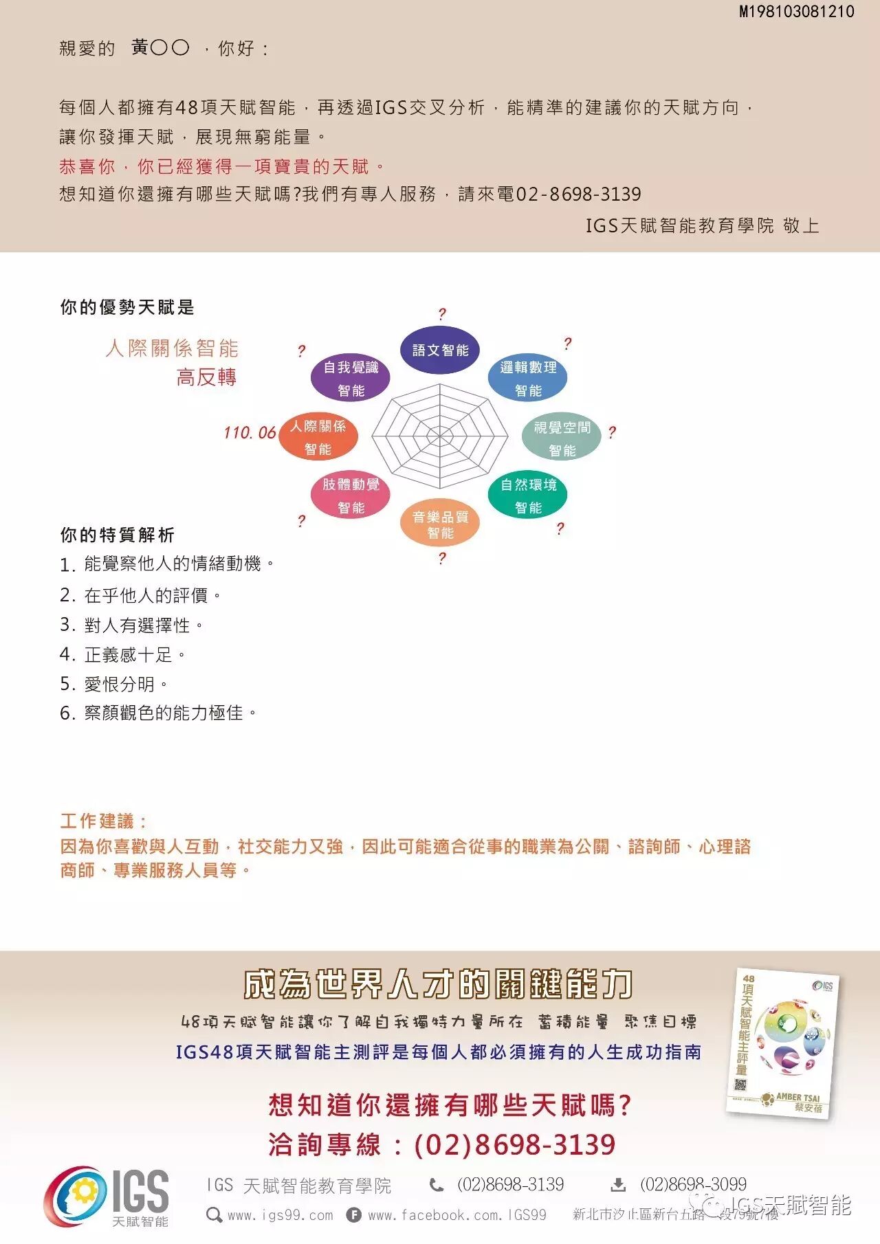 (凭截图核可后,我们将传送优势天赋检测申请表链结,每人限体验一次)
