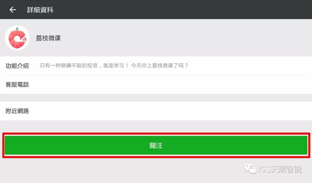 或,在荔枝微课搜寻「IGS」,找到「IGS天赋智能教育集团」,点击「关注」