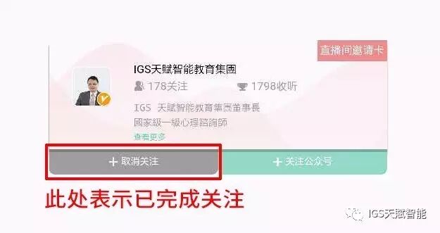 现在就关注「IGS天赋智能教育集团」荔枝微课直播间吧!