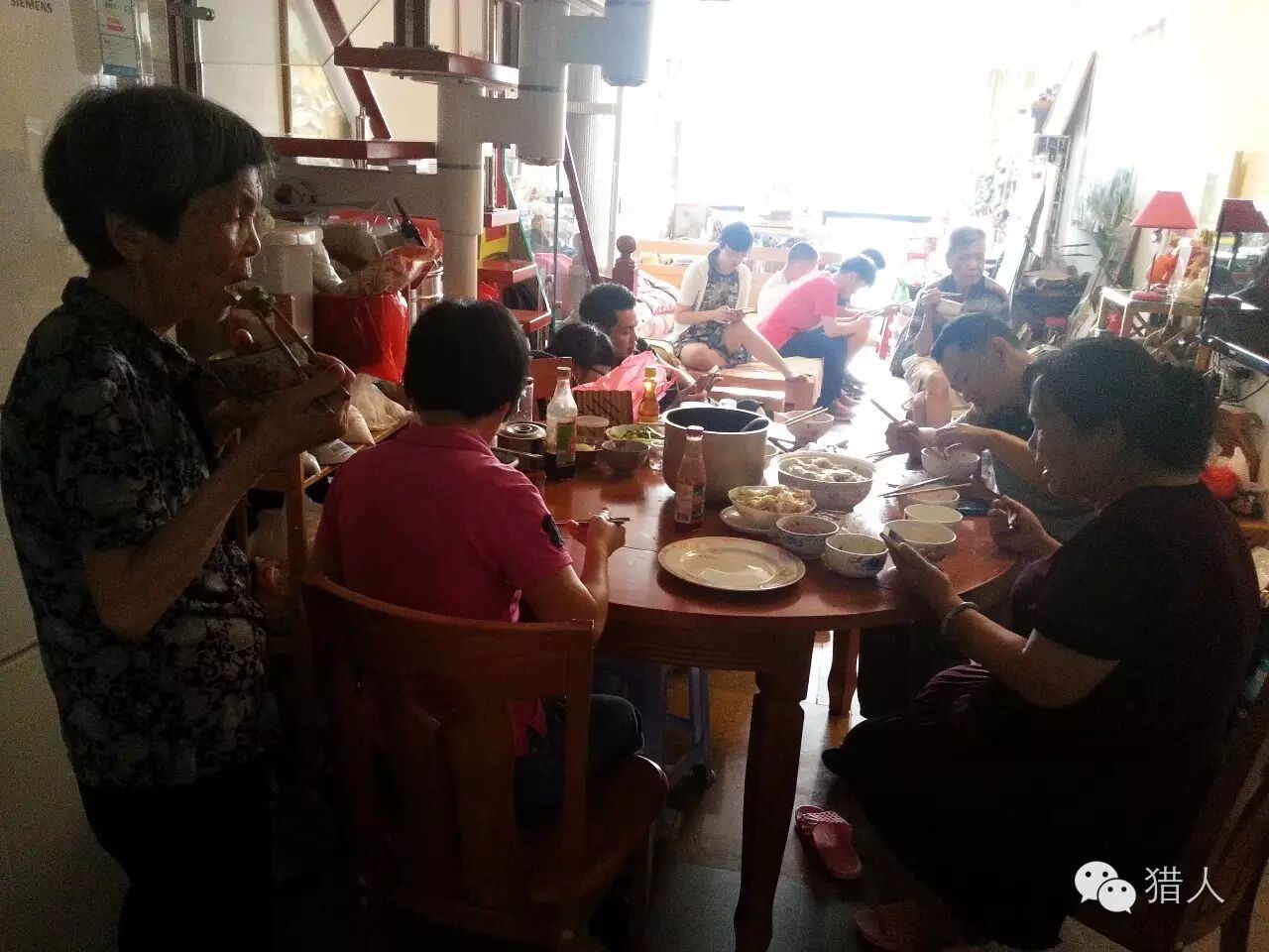一家人相聚在一起时,母亲总是忙完后,躲在角落吃,看着大家围上桌快乐的样子,就是她最满足最幸福的时光。常常催母亲上桌,但每次母亲都笑而不言,我总是说老妈是不能上桌的封建社会小媳妇,说出后总是有几分后悔,其实从小时候,我们就开始享受那种躲在角落里的爱,那种角落里的安心和微笑,已经是一种习惯一种方式。现在再要求一起围于桌间更多的是我们的角度、想法和理解。