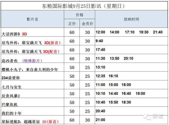 注:偶有改动,请以影城当日放映为准,带来不便敬请谅解!