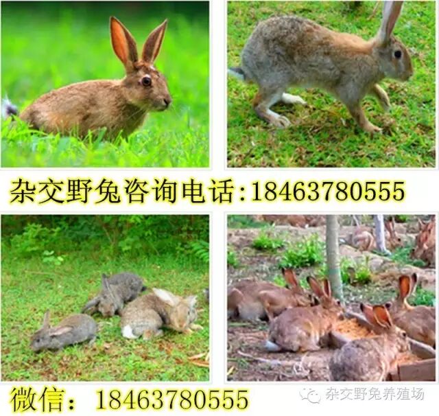 请短信或电话告知<18463780555>! 杂交野兔是草食性、节粮型小家畜。用草,玉米杆,玉米,豆皮子,麦麸,稻糠等农作物做的颗粒饲料,我国有40-60亿亩草坡和草原,还有广阔的山地以及农作物秸秆,这些一年四季都有,来源丰富、价格低,因而养兔的成本极低,一只商品兔的成本仅30元。兔舍可以用例如简易房,仓房,大棚,闲置的各种圈舍都可以饲养,因此适合一般养殖场及大型企业规模发展。