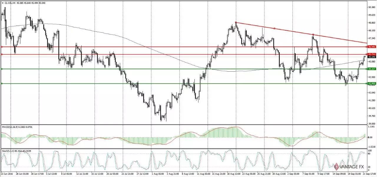 昨日油价涨幅达3%,由于上周原油库存连续第三周意外减少,缓和对全球供应过多的担忧。此外,在美联储公布利率决议后,美元下滑,且挪威原油,对北海原油出产带来威胁,进一步提振油价。不过总体上原油供给过剩的局面仍未改变,那么40-50的震荡区间还将维持,目前油价再次回到大幅震荡的中间区域,建议等待合适点位进行做空,上方参考的阻力首先是45.80,更上方的阻力则是46.50,可借助此位置开展做空的操作;下方的目标分别是44.30以及42.90。