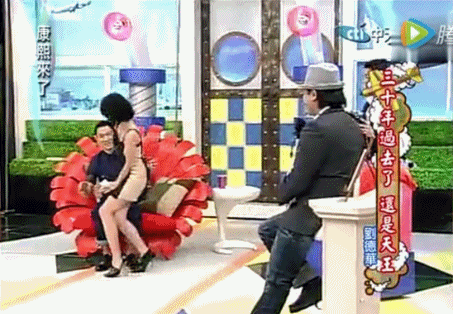 ▲比如一代天王德高望重的刘德华就曾遭遇小S的招牌飞扑。