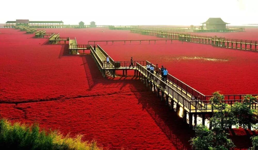 一个红的很妖艳的地方。这里被称为“世界红色海岸线”、“中国最精彩的休闲廊道”、“中国最浪漫的户外游憩海岸线”。