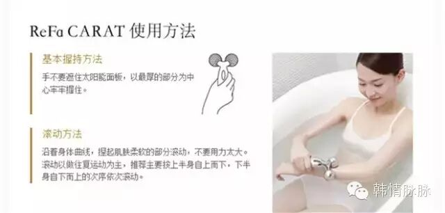 Refa carat 是名副其实的明星产品,主要是用来瘦脸,当然这款美容仪全身都好用,脸部主要就是向上推,提升脸颊皮肤,法令纹、抬头纹也可以按摩!当然身上也能按摩,拜拜肉、小腿肚、大腿外侧...也是可以经常会顺带按摩的地方。效果非常强大,心动指数也是蹭蹭上升!