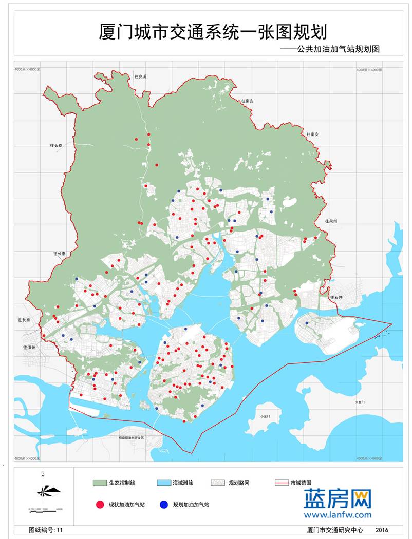 公共加油加气站规划梳理划定2020年公共加油加气站设施总用地面积53.78公顷,其中,厦门岛加油加气站设施总用地11.8公顷,海沧区加油加气站设施总用地8.56公顷,集美区加油加气站设施总用地6.47公顷,同安区加油加气站设施总用地20.2公顷,翔安区加油加气站设施总用地6.75公顷。2020年公共加油加气站设施共155处,其中,厦门岛加油加气站设施45处,海沧区加油加气站设施24处,集美区加油加气站设施26处,同安区加油加气站设施38处,翔安区加油加气站设施22处。