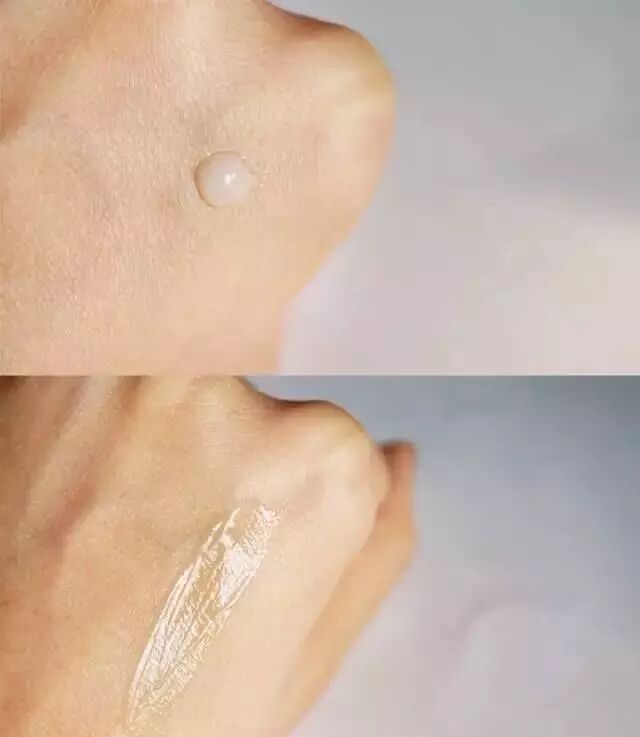 其次看它的质地。刚挤出来是乳白色的液体,稀稀的,有点流。轻轻涂抹推开,很快就被吸收了。因为搭配很多层护肤品,不厚不腻真的很关键,在使用感上真的完胜很多大牌肌底液。