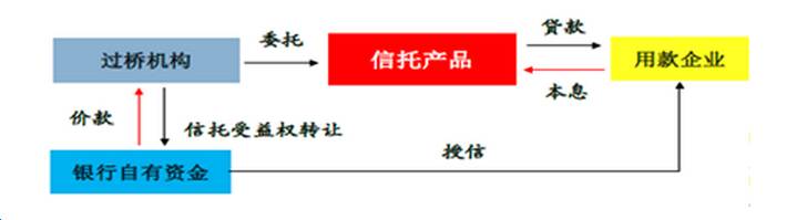 银行自有资金+过桥企业+信托计划——放贷(银行自营资金投资信托收益权模式)