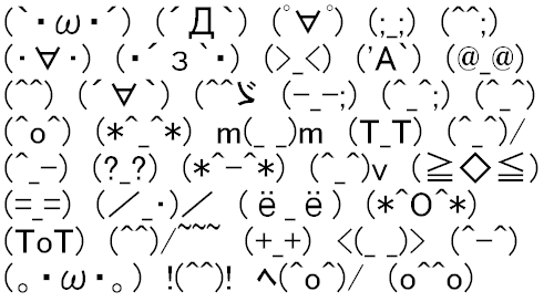 这一类由标点符合组合而成的简单表情在欧美最先流行起来,XD 就是其中生命力非常持久的一款表情。日式颜文字又称绘文字(kaomoji),它将美式表情符号发扬光大,更具创意与艺术感。东亚(主要是中国与日本)的文字系统不同英语,可使用的符号更多,比如十年前曾经风靡一时但是现在已经很少看到人用的「囧」就是其中典型。搜狗表情里面自带的表情如 O(∩_∩)O 哈哈哈~以及掀桌子 (╯‵□′)╯︵┻━┻就是日式颜文字的代表。