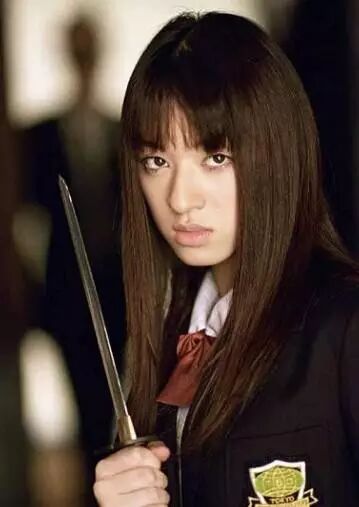在《杀死比尔》中,栗山千明饰制服美少女杀手,手拿炼球血滴子在片中挥舞自若,以青春狂野的姿态砍杀乌玛·瑟曼,清纯甜美又狠尽十足,黑色长达也成为她的一大标志。