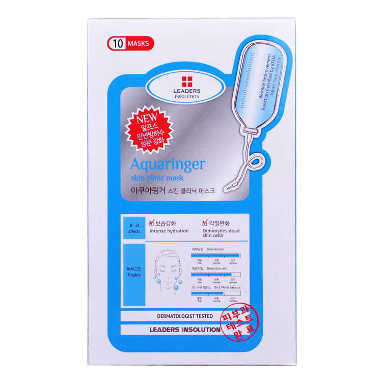 产品介绍:韩国首尔医科大学LEADERS CLINIC皮肤科众多教授医师经过长达十年的临床试验最终成功研制开发出适合所有女性使用的护肤产品,亲身体验过的女性,无不称赞其品质,具有快速令肌肤水润清透的独特魔力,并且适合所有肤质包括敏感肌肤强效补充肌肤水分,给予肌肤润泽和光滑,在韩国如此小的国家每月可销售50万张以上的面膜贴,2009年末统计根据此品牌在韩国开设的专业美容会所超过500家,并且于2010年9月成功登录香港市场。