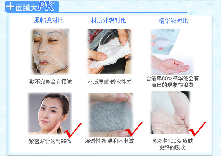 3.可在沐浴后使用,或用热毛巾敷面10分钟后使用,面部毛孔充分扩张,更利于肌肤吸收面膜中的营养
