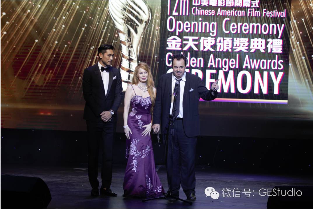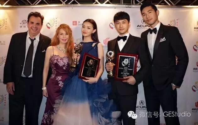 好莱坞知名制片人金铂莉-凯茨、著名影星高以翔、英国电影和电视艺术学院董事桑德罗-莫奈蒂为最佳新晋男演员田牧宸颁奖