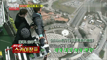 ▲RunningMan登上澳门塔 演绎绝命蹦极