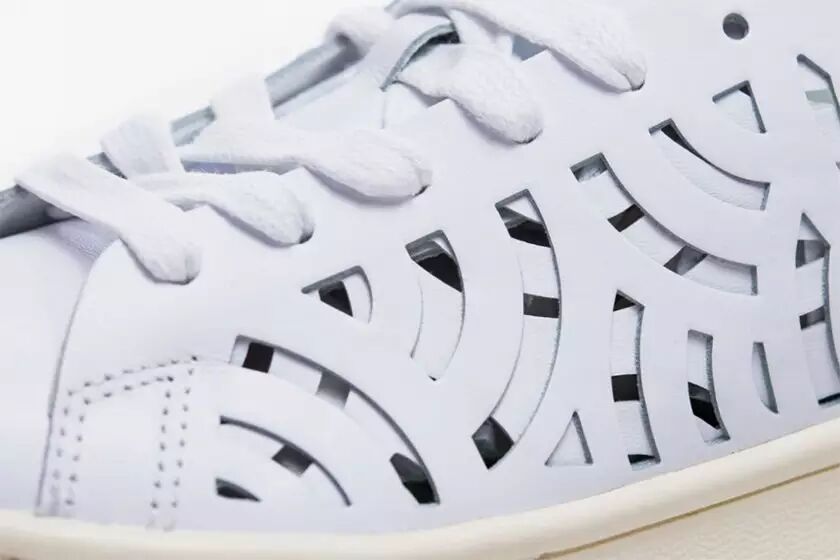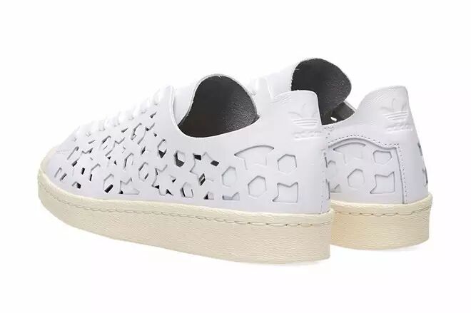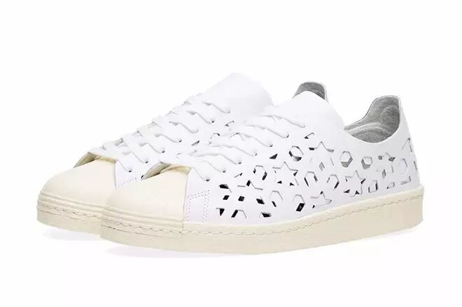 在继Stan Smith后,adidas Originals又将“Cut-Out”的概念运用到另一双经典Superstar 80s之上。采用两层白色皮革来构成Superstar的鞋身,通过镭射切割方式于两侧呈现出繁复交错的星星与六边形等几何图案,最后,搭载上复古气息浓烈的米白色“贝壳头”与橡胶大底而成。目前该鞋款现已发售,定价为109美元!