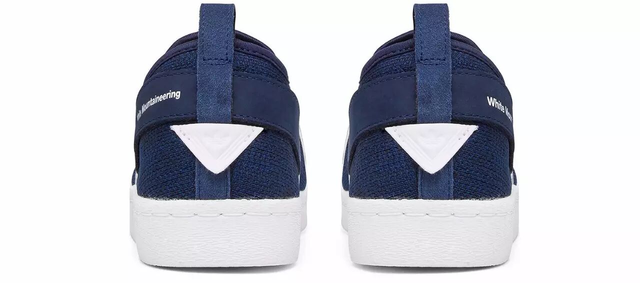 除了庆祝Equipment系列25周年而特别打造的EQT Support 93/17之外,White Mountaineering今季还与adidas Originals带来两款Superstar Slip-On联名配色。以经典Superstar为蓝本出发,新鞋款不仅将Primeknit技术注入鞋面,更将双方合作系列招牌的「条纹」细节融入鞋头交叉绑带之中,同时辅以White Mountaineering字样,以及后跟三角Logo表明身份,至于Superstar标志性的「贝壳头」和复古大底则得以保留。