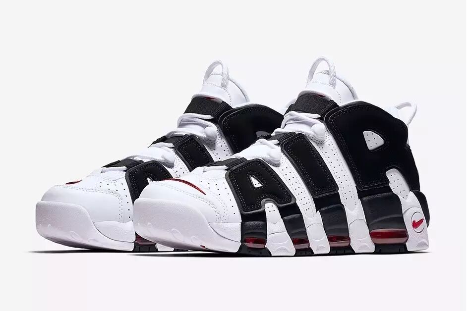 3.Nike Air More Uptempo推出全新「Scottie Pippen」配色Nike Air More Uptempo于1995-1996季度为公牛队名将Scottie Pippen高度著用,甚至连出战奥运会亦是著用此鞋款。今回带来之「Scottie Pippen」配色是为了向他作出致敬,鞋身以白色皮革搭配黑色麂皮「AIR」字样,鞋面Swoosh标志以黑色绣线搭配红色线围边,并于后跟位置加入Scottie Pippen的专属标志。