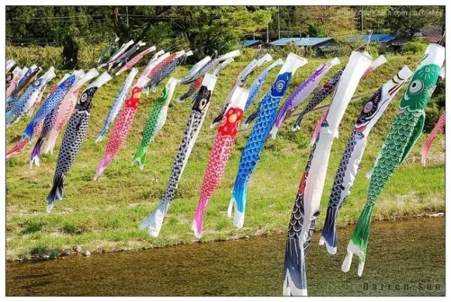 5月5日男孩节:节日当天,有儿子的家庭门前都悬挂“鲤鱼旗”,表示鲤鱼跳龙门的意思。这种用布匹或绸缎裁成“空心鲤鱼”,分黑、红和青蓝三种颜色。黑,代表父亲;红,代表母亲;青蓝代表男孩自己。家里有几个男孩儿,门口就悬挂几面青蓝旗。