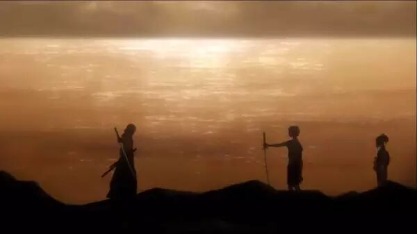 《八月歌》响起时出现的画面,是主角之一、来自琉球的落魄武士无幻被人算计被迫坠海的场景,蒙太奇穿插着他在濒死状态下脑中闪现的回忆。、在地狱徘徊的少年,不正映射了曾经的琉球王国哀怨的血泪史吗?