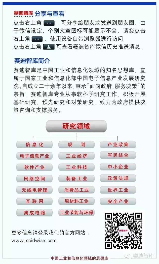 赛迪智库世界工业研究所是工信部直属事业单位中首家专门从事研究世界主要经济体工业发展相关问题的研究机构,主要为政府部门提供各国工业领域的最新动态、产业政策、战略方向、国际交流与合作方面的学术研究和咨询服务。本所重点关注国际工业重点领域发展动态和国际工业领域的重大热点、焦点问题,比较美国、日本、欧洲等主要经济体与中国在扶持工业发展方面的政策措施,总结国际经验,提出促进我国工业经济发展水平不断提升的政策建议。主要为工业和信息化部相关司局提供支撑服务,同时完成其他部委和地方政府相关委托项目。研究所组成了以博士后、博士及硕士为主体的研究队伍,专业覆盖产业经济、国际贸易、机械制造及自动化、工商管理等领域。目前,研究所定期出版《世界工业研究》(双月刊)。