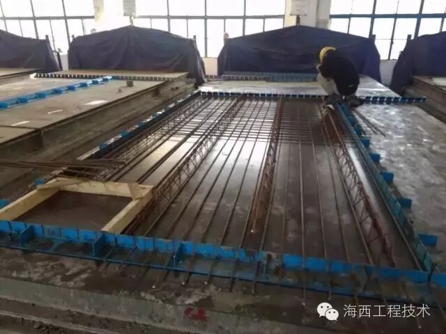 以装配式建筑板为例,生产工序:钢模制作→钢筋绑扎→混凝土浇筑→脱模