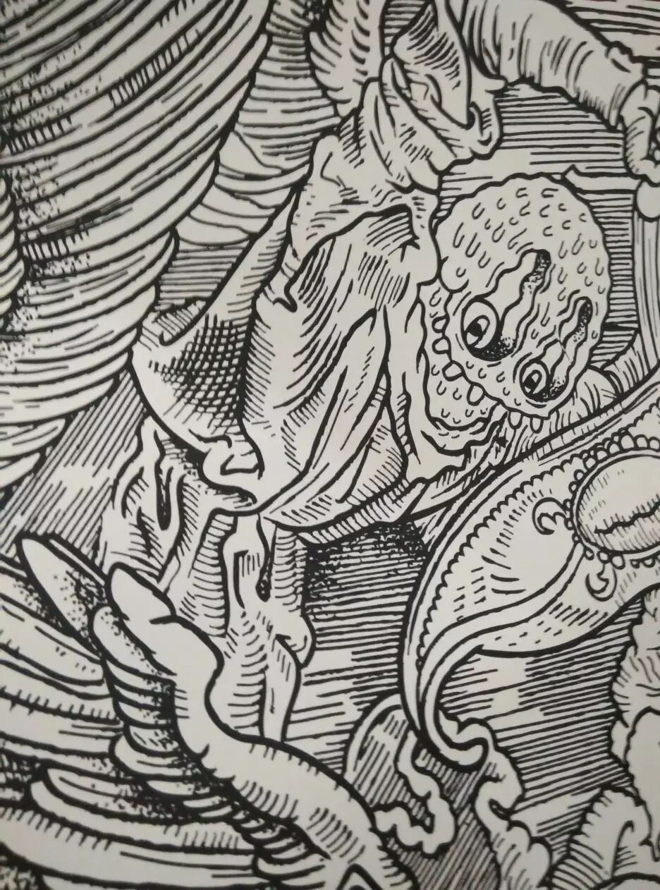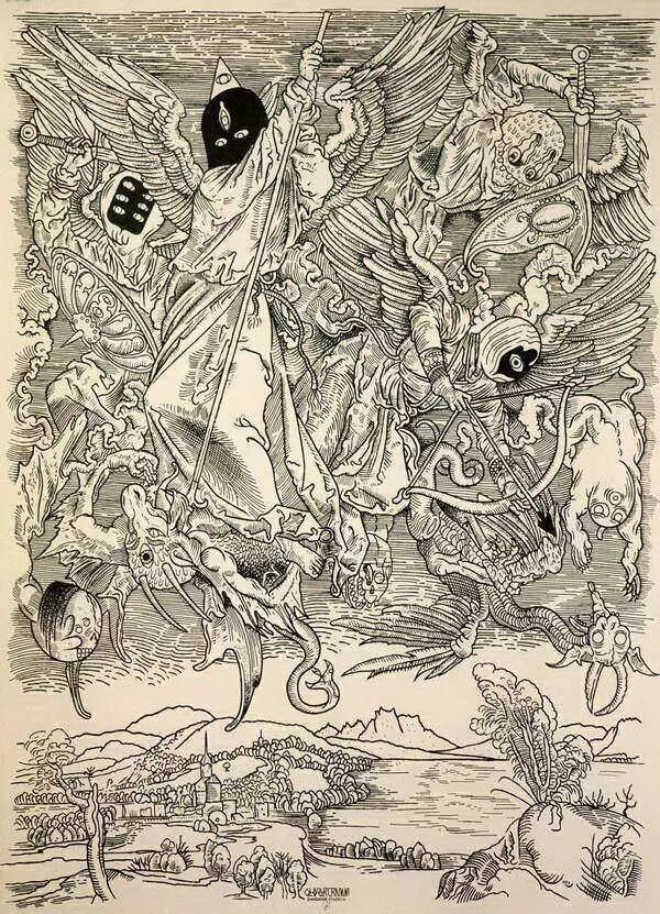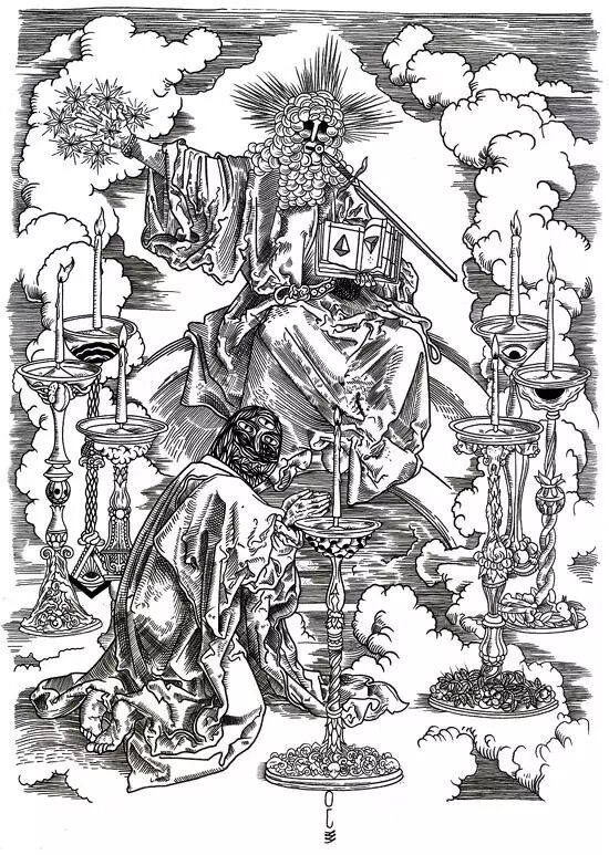 不同与上一幅作品,第二幅 Olivier <<Koa>> Cramm 的作品充满了宗教意味,受到来自大师丢勒很大程度上的影响。同样是由法国 FrenchFourch 团队丝网印制出品,被归纳在丝印团队的 Collection Classique 系列之中。