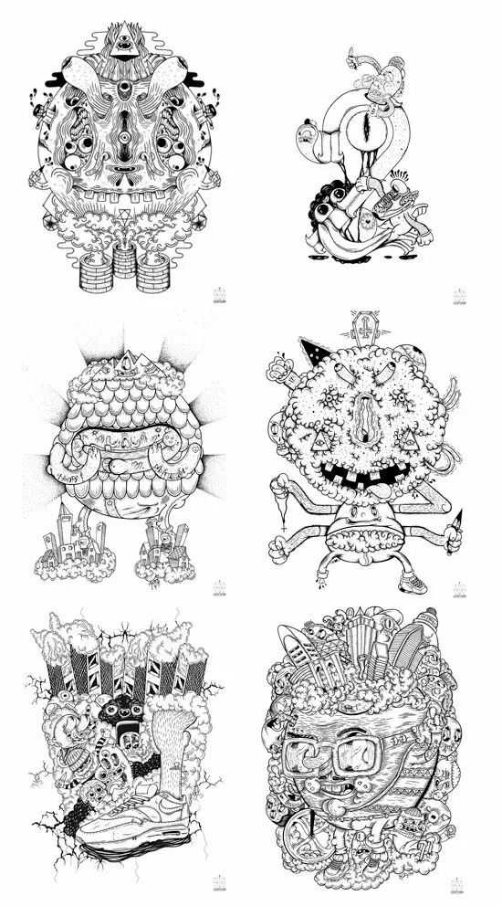 Olivier 的艺术作品是一个快乐的丰富多彩的,却也处处压抑且混乱的世界,在里面怪物依然是怪物,而人类却是奴隶。在他还是小孩子的时候,就被各种各样的怪物深深吸引。在他的小宇宙里,充满了宗教符号,纹身以及神秘的标志…
