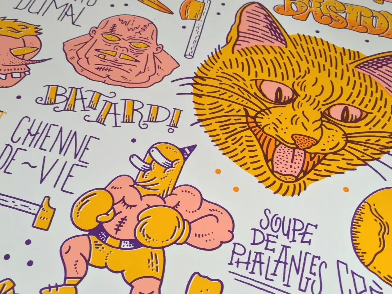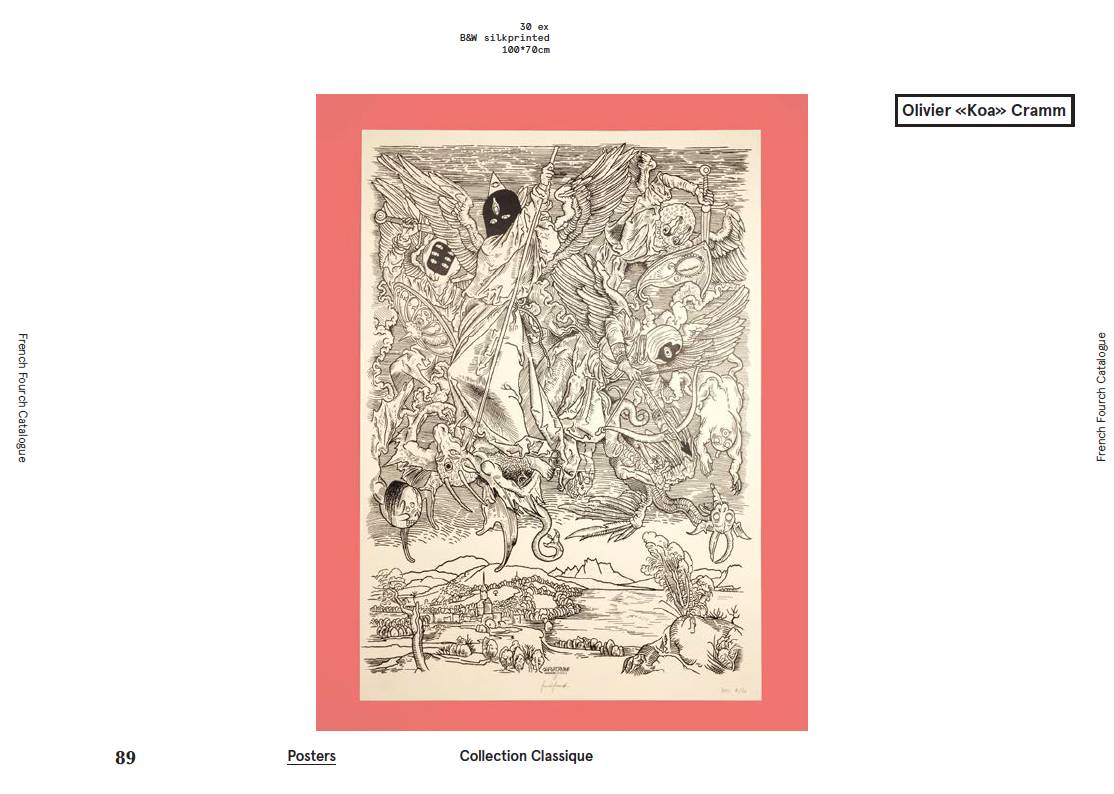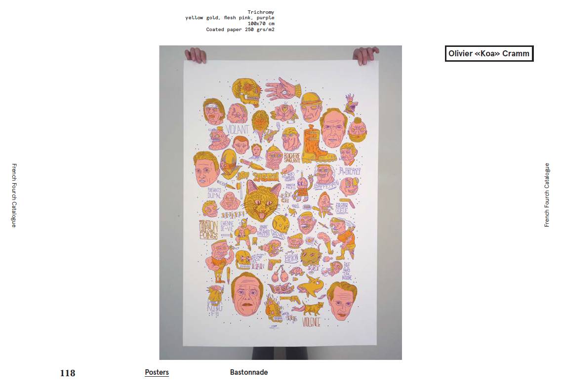 The following are two art prints from Olivier <<Koa>> Cramm, both silk-screen printed by FrenchFourch group. The first one was included in their Bastonnade series. The main elements are taken from Olivier’s Portrait series, you may want to take a closer look: how many characters could you recognize from this print?