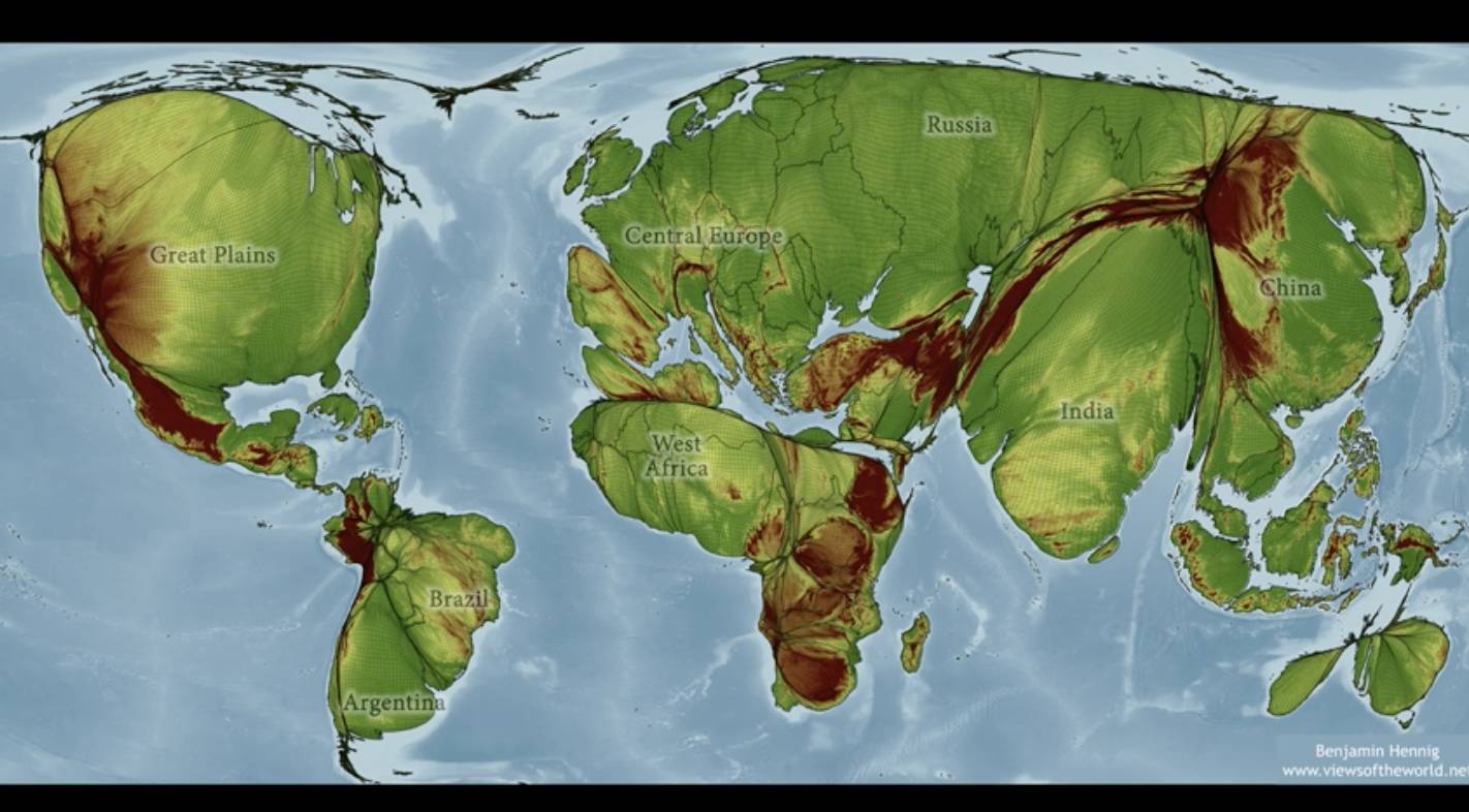 我想请你大开脑洞,重新想象这个世界。我想向您展示一些由本·亨尼格(Ben Hennig)绘制的地图,这些地图展现的是大部分人永远都不会看见过的地球。