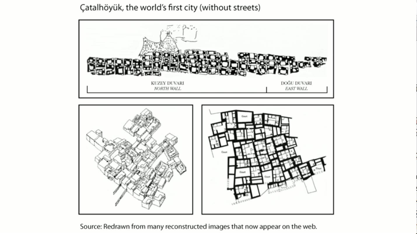 我们长时间住在城市,但我们的祖先们并不是。这是作为世界上第一个城市之一的Çatalhöyük。在九千年前的高峰期,人们不得不走过别人家的屋顶回到家里。如果你仔细看城市的地图,你会发现它没有街道,因为街道是我们后来才发明的东西。面对世界的变化,它通过反复尝试,随之而变。我们慢慢地构建起更好的方式生活。最近,世界的步伐变得越来越快。但实际情况是,直到不久前,我们才意识到人类是一个物种。直到过去的几十年,我们才有能力画出这样的地图。