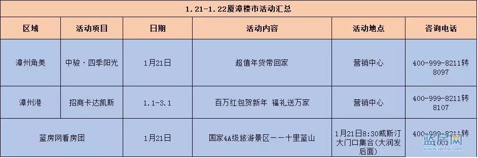 相比漳州,深耕厦门开发商在年关之际却略显低调。据小编统计,本周的厦漳楼市活动仅有漳州2个项目“突围”。蓝房看房团也将在本周六火热发团!