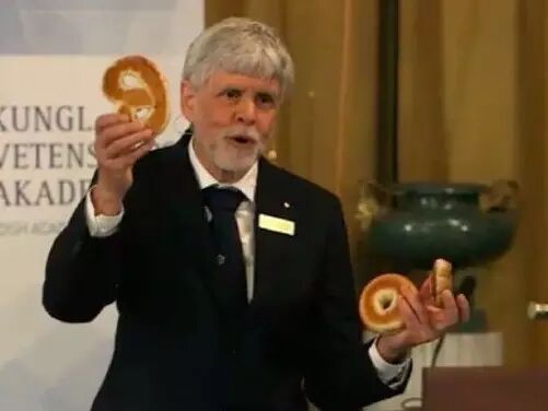 为了能使大家明白这是怎么一回事,诺奖物理委员会更是煞费苦心,用没有洞的肉桂面包、一个洞的百吉圈和两个洞的扭曲包作为道具进行了现场阐述。