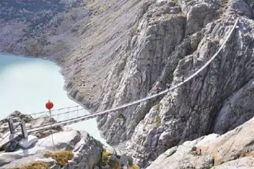 瑞士境内阿尔卑斯山上的特里福特桥,世界上最长的仅供步行的悬架桥,全长557英尺(约合170米),要是走到一半心脏病发作的话......