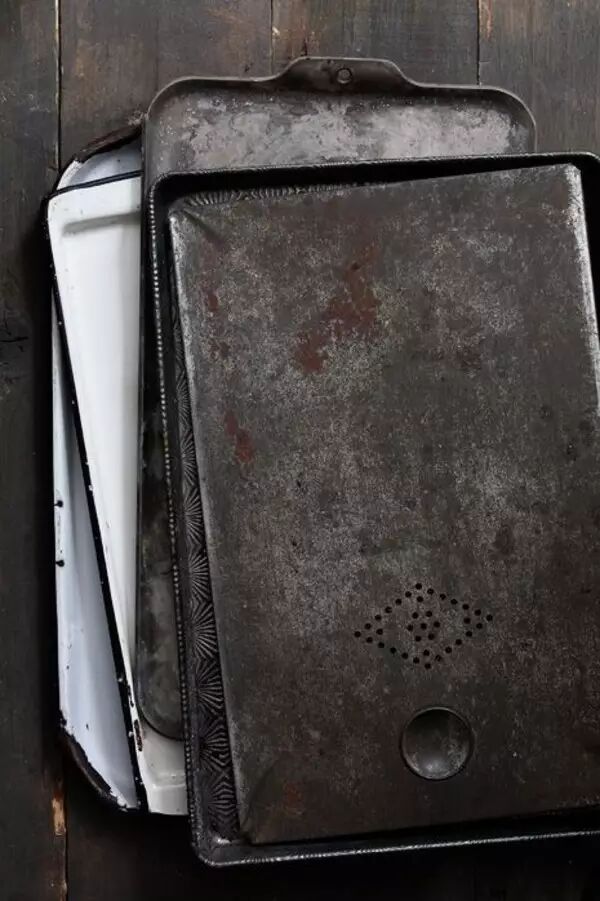 非常多的欧美食物摄影者喜欢用铁皮盘当背景,拍出黑暗系风格的照片。铁皮盘使用时间越久远越有时代感,拍出来的照片越带感。