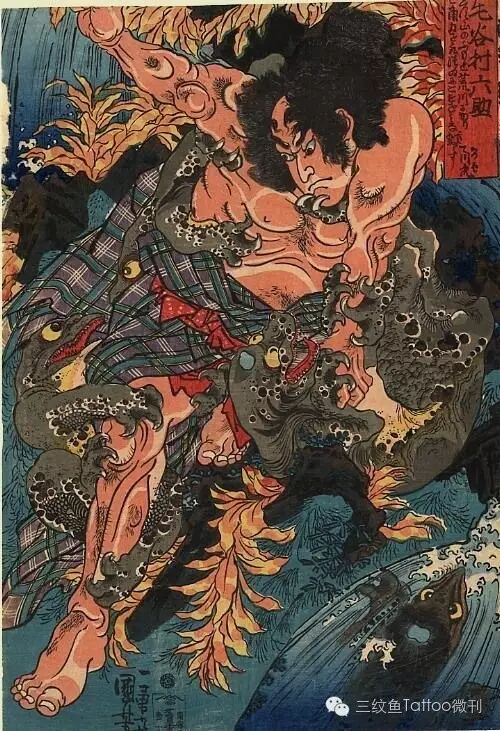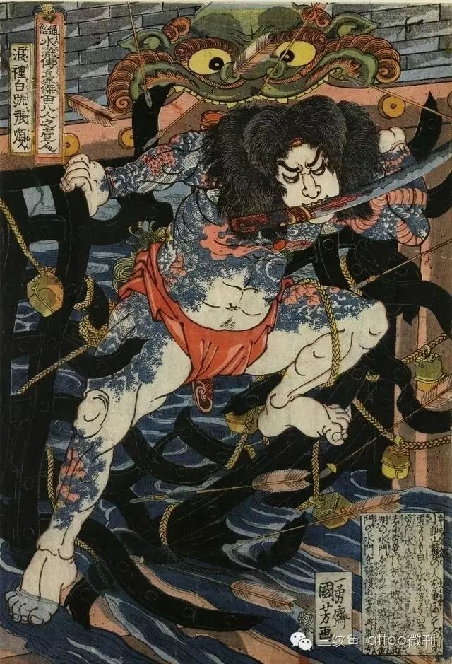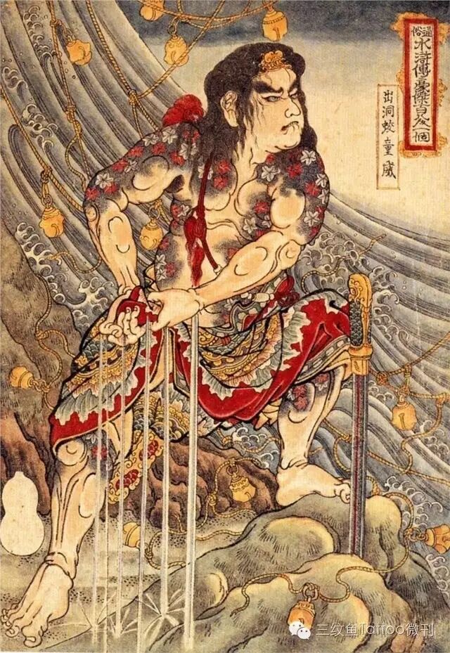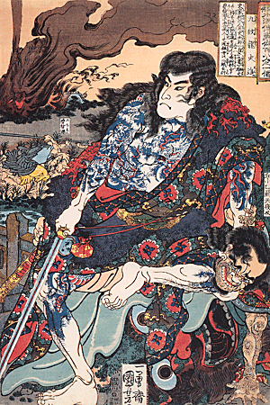 19世纪日本浮世绘大师歌川国芳根据中国古典文学作品《水浒传》中108个梁山好汉的人物性格,生动地描]绘出富有个性的典型人物肖像。威武繁复,细腻浓烈,丝丝入扣,格外受人欢迎。留下大量鬼怪画,风格繁复,形象生动。