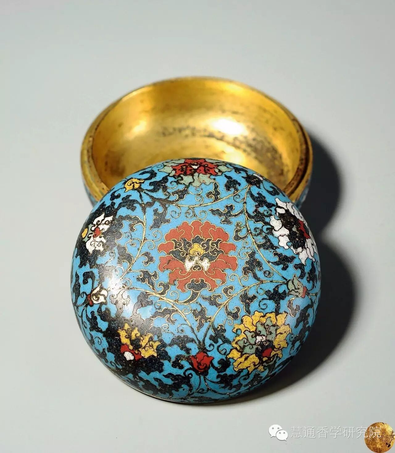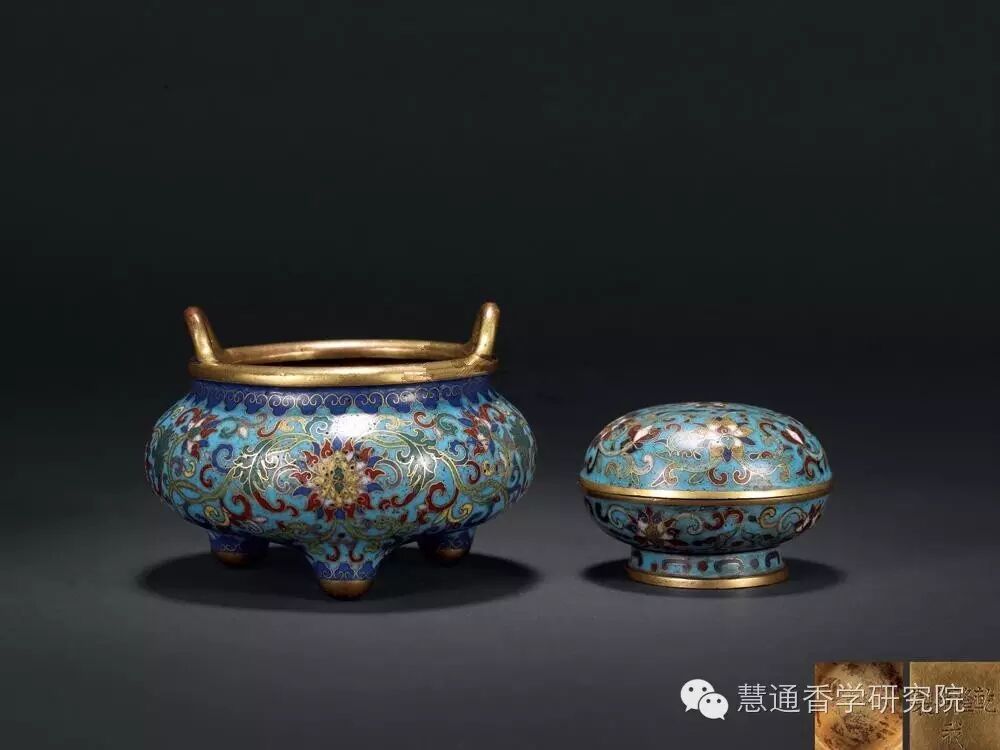 清乾隆 铜胎鎏金掐丝珐琅香炉及香合