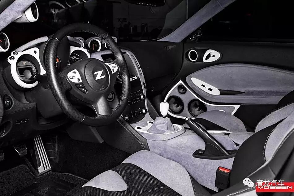 内装也进行不小幅度的改装,以黑色为主调搭配淡紫色的麂皮包覆,其余像是仪表外框、排档座、内车门把等则是施以白色涂装,看起来「触感」应该相当不错,可是应该很容易弄脏吧!打开尾门,行李厢内已被扩大机、重低音喇叭等影音系统给占满,整辆370Z呈现出极为美式的改装风格。