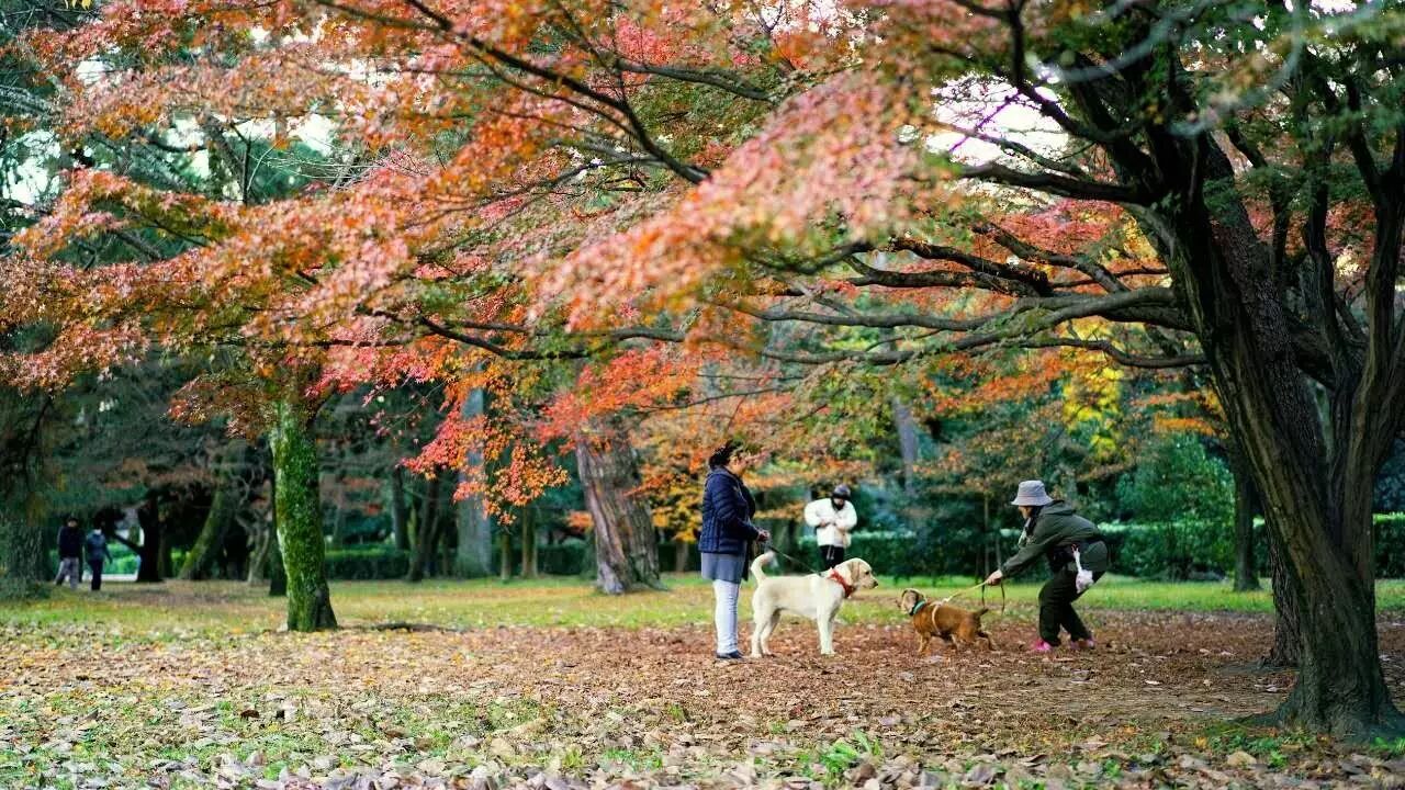 看京都红叶,也就“红叶狩”,是要再早几日,一般在十一月下旬最为安全,达到鼎盛。现在这个时候,一遇到风,叶子就落了,即使未落的红叶,叶缘也多有枯焦。当然落叶是一种风景,满大街都是叶子。