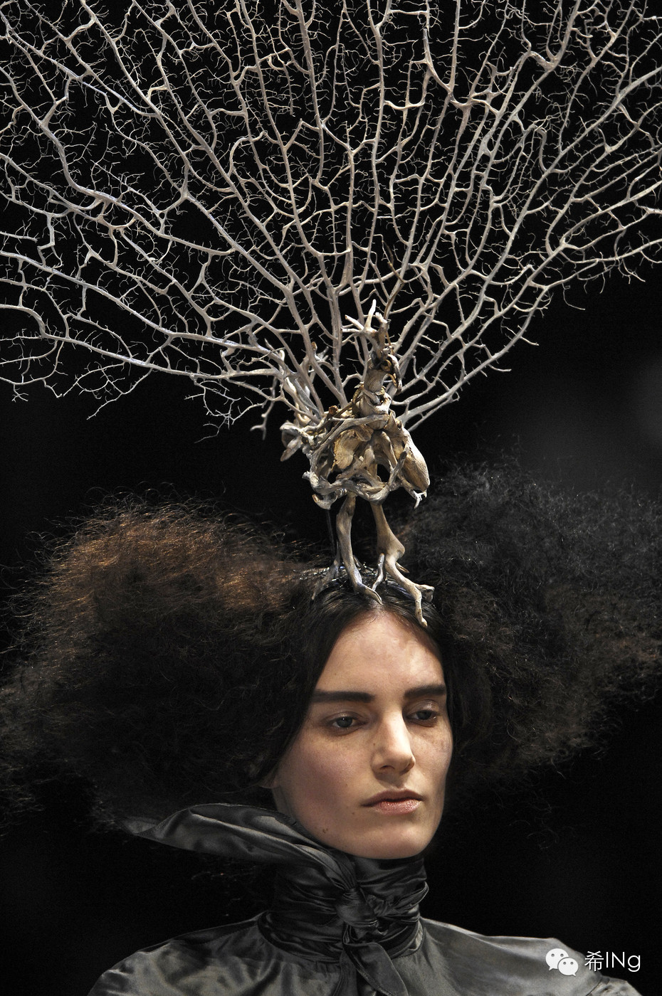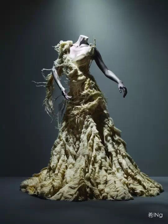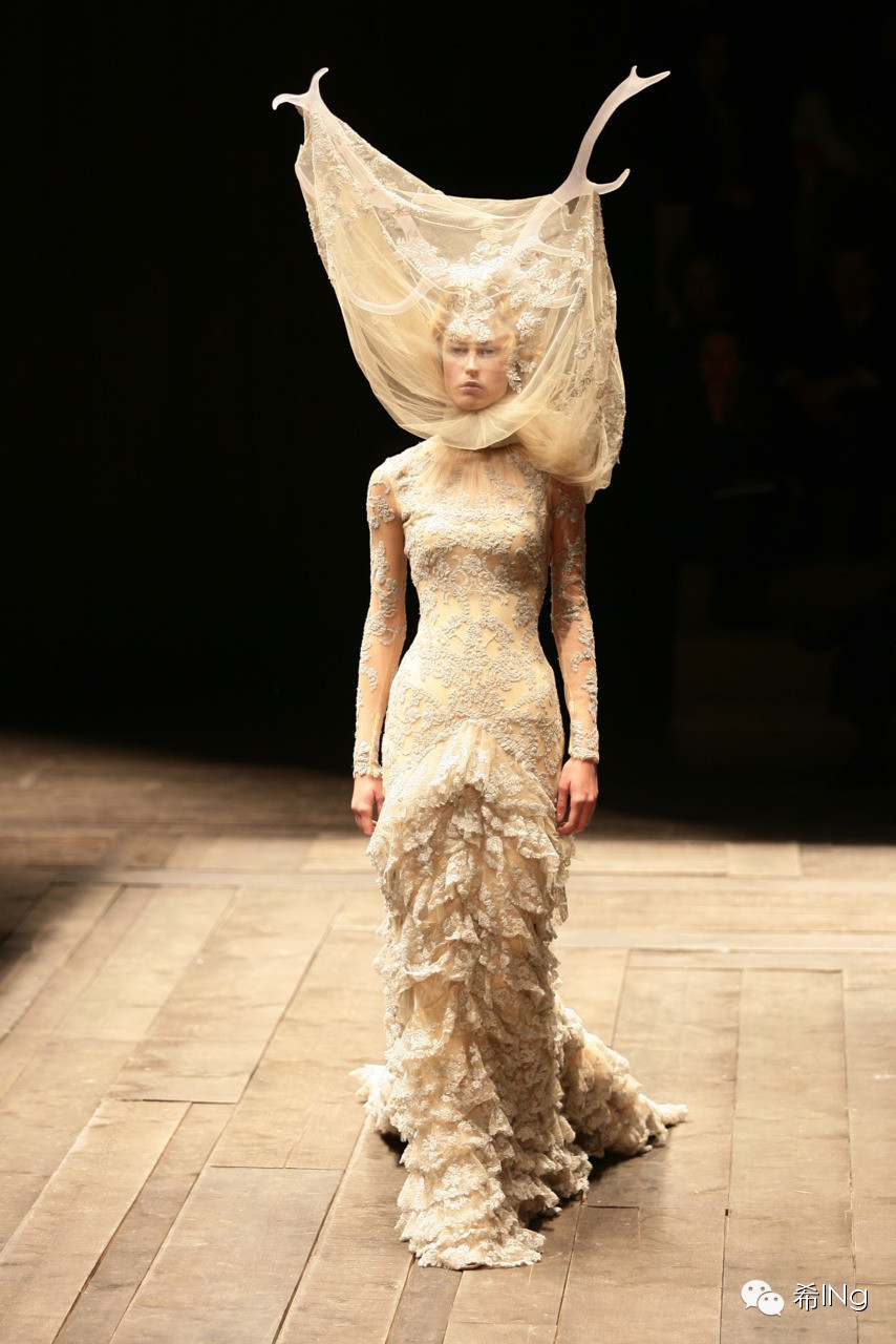 有人说,Alexander McQueen 的每一场秀都像是一场对于过去和未来的浪漫神话,融合了极具戏剧色彩和黑暗质感的衣服简直就是一件件艺术品,将他的灵魂述说成一场黑暗的野蛮童话。
