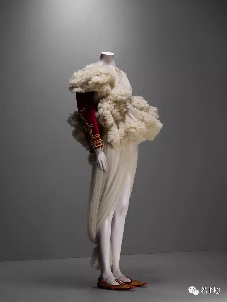 McQueen解读:这件衣服象征着在Givenchy时装屋的经历,那是我职业生涯的基础。开始我只是个Savile Row的裁缝,不理解柔软和松弛的感觉。而在Givenchy我学会了轻盈和柔软的感觉。对我来说是一次珍贵的教育。