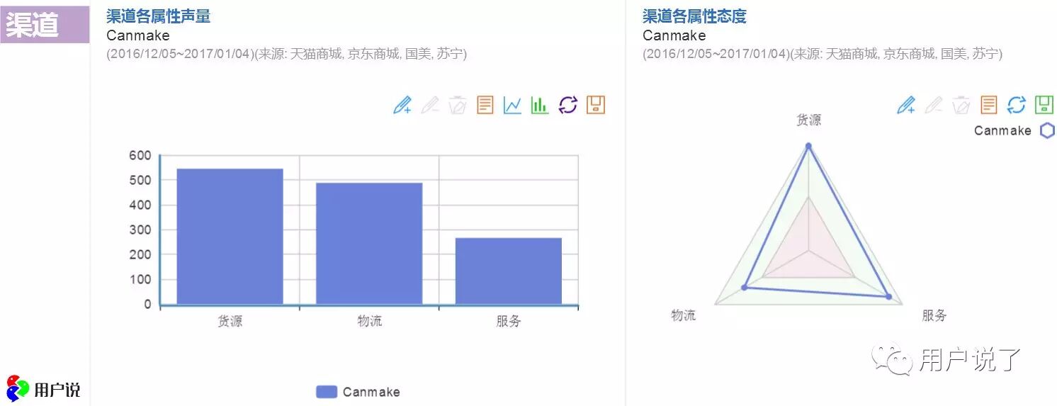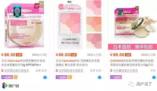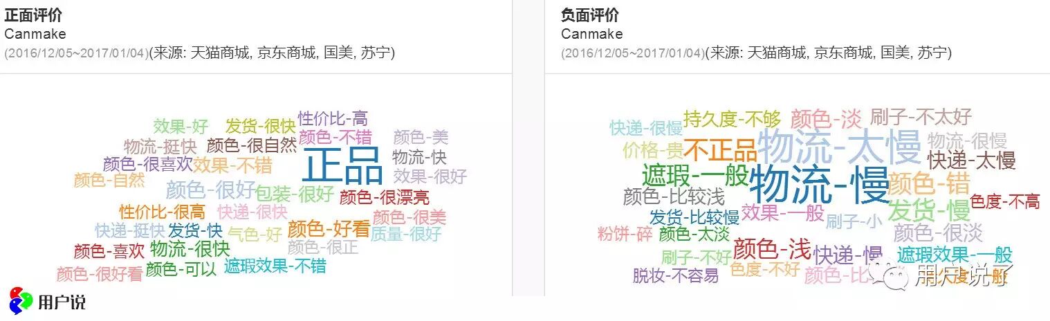 但用户说分析师发现,CANMAKE品牌在天猫商城有很多海外代购旗舰店,以价格优势获得了许多消费者的青睐。CANMAKE应主力宣传官方销售渠道,实现货源有保障的可行性,避免负面评价影响品牌形象。