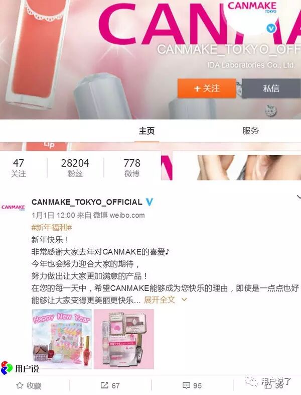CANMAKE在国内有两个微博,一是CANMAKE日本官方微博,一是CANMAKE海外旗舰店微博,粉丝数量较多,双微博促使品牌宣传到位,也容易在微博渠道扩大受众覆盖面,但日本官方微博还应着力推广,提升品牌微博渠道的知名度,吸引消费者关注。两个微博中,品牌优惠活动、新品上市预告以及用户体验分享是其出现频次最多的内容,用户说分析师发现,日本官方微博粉丝活跃度明显高于海外旗舰店,微博转发量和评论数都是较多的,说明注重品牌与消费者间的连结,海外旗舰店微博应引以为鉴,加强消费者的黏性,合力为品牌宣传打造更好的趋势。