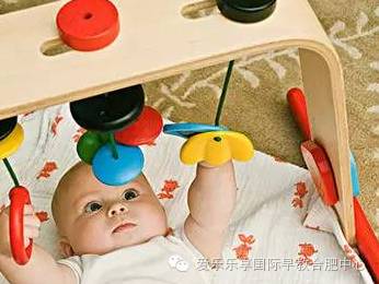 GYMMY说:继续进行触觉或抓握训练,色彩丰富、有着不同材质小玩具的健身架是我的选择。一种是布料的地毯式的,一种是塑料的,除了让他去触感觉两种材质的不同,也可以把小玩具取下来,节约了另外购买小玩具的钱~