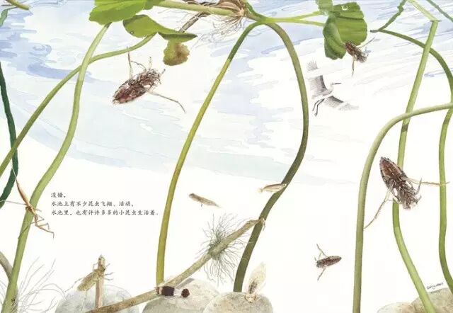 故事中,他以蜻蜓的一生为《池上池下》的主线,以情景交融的文字和细腻写实的画,辅以蜻蜓观察笔记,为读者创造一个值得微观细品的小小生态世界。